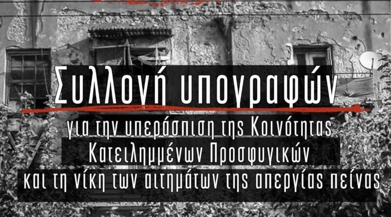 Συνέλευση Κατειλημμένων Προσφυγικών (ΣΥ.ΚΑ.ΠΡΟ.) ΣΥΛΛΟΓΗ ΥΠΟΓΡΑΦΩΝ ΓΙΑ ΤΗΝ ΥΠΕΡΑΣΠΙΣΗ ΤΗΣ ΚΟΙΝΟΤΗΤΑΣ ΤΩΝ ΚΑΤΕΙΛΗΜΜΕΝΩΝ ΠΡΟΣΦΥΓΙΚΩΝ ΚΑΙ…